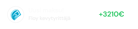Floyn palvelumaksu on 4% + kevytyrittäjän pakolliset vakuutukset 2,5%. Palvelumaksu vähennetään vasta kun lasku on maksettu, eli et maksa mitään ennen kuin saat rahaa. Palvelussa ei ole kuukausimaksuja tai muita piilokustannuksia.